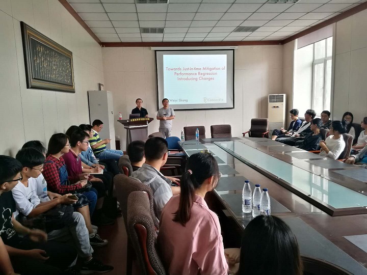 报告人简介:Dr. Weiyi Shang is an Assistant Professor and Concordia University Research Chair in Ultra-large-scale Systems at the Department of Computer Science and Software Engineering at Concordia University, Montreal. He has received his Ph.D. and M.Sc. degrees from Queen’s University (Canada) and he obtained B.Eng. from Harbin Institute of Technology. His research interests include big data software engineering, software engineering for ultra-large-scale systems, software log mining, empirical software engineering, and software performance engineering. His work has been published at premier venues such as ICSE, FSE, ASE, ICSME, MSR and WCRE, as well as in major journals such as TSE, EMSE, JSS, JSEP and SCP. His work has won premium awards, such as SIGSOFT Distinguished paper award at ICSE 2013 and best paper award at WCRE 2011. His industrial experience includes helping improve quality and performance of ultra-large-scale systems in BlackBerry. Early tools and techniques developed by him are already integrated into products used by millions of users worldwide. Contact himat shang@encs.concordia.ca; http://users.encs.concordia.ca/~shang.