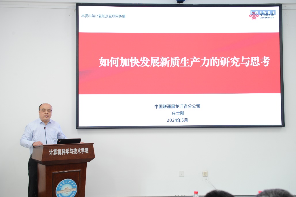 5月8日,beat365英国官方网站举行了智汇论坛第二十二期活动,本次活动邀请联通黑龙江省分公司科技创新部首席专家,联通集团级二级讲师庄士刚作“如何加快发展新质生产力的研究与思考”讲座。