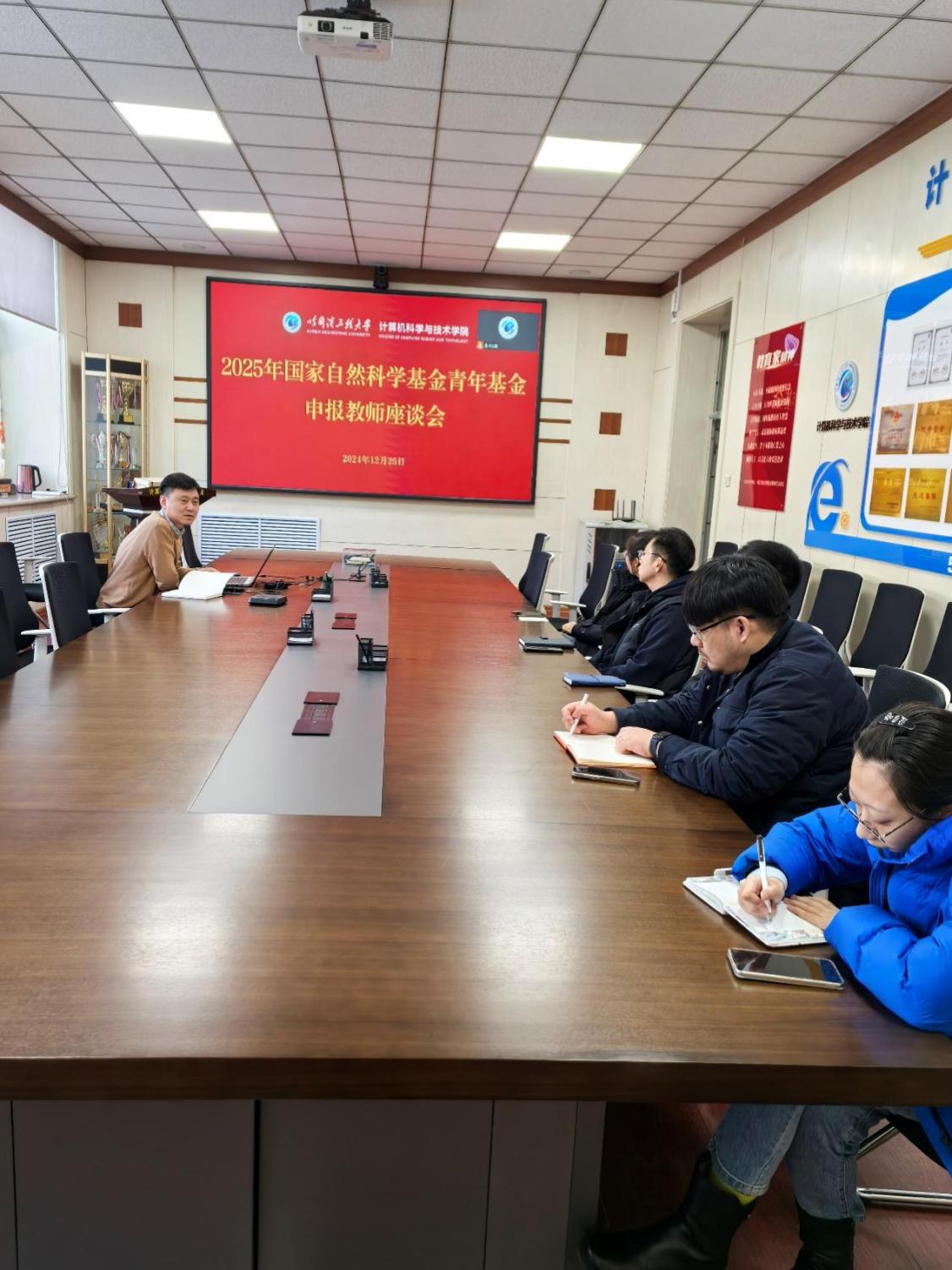 为深度激发科研创新的内生动力,扎实做好 2025 年度国家自然科学基金青年基金项目申报工作,12 月 25 日下午,计算机学院召开了 2025 年度国家自然科学基金青年项目申报推进会暨座谈会,旨在对该年度的基金申报工作展开进一步的动员、部署与落实。此次会议由学院副院长苘大鹏主持。