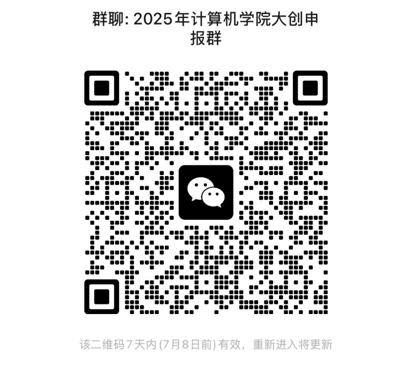 2025年7月3日12:00前,请加入计算机学院大创申报群,群昵称改为学号+姓名。