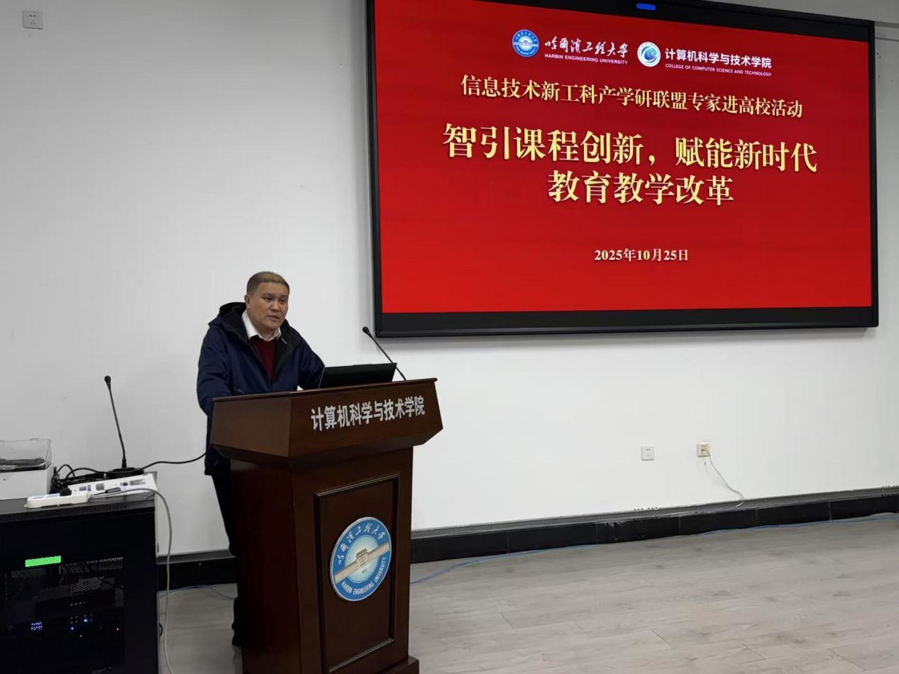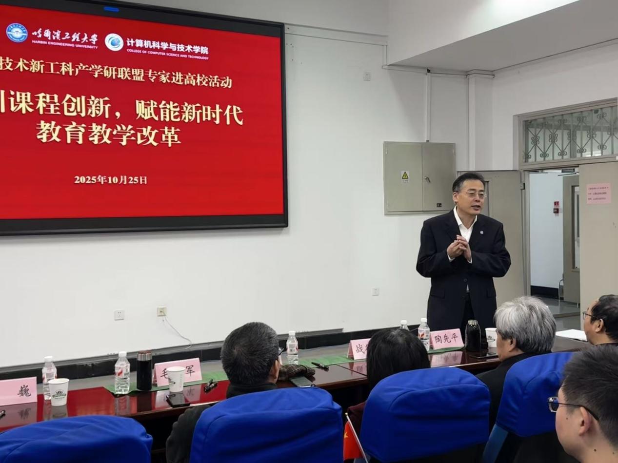 beat365英国官方网站本科生院副院长刘海波教授代表学校致辞,他对各位联盟专家来到学校分享课程建设以及教育教学数智化改革宝贵经验表示了感谢,并强调了本次活动的举办对于哈尔滨计算机学院乃至全校的新工科建设的重要性。